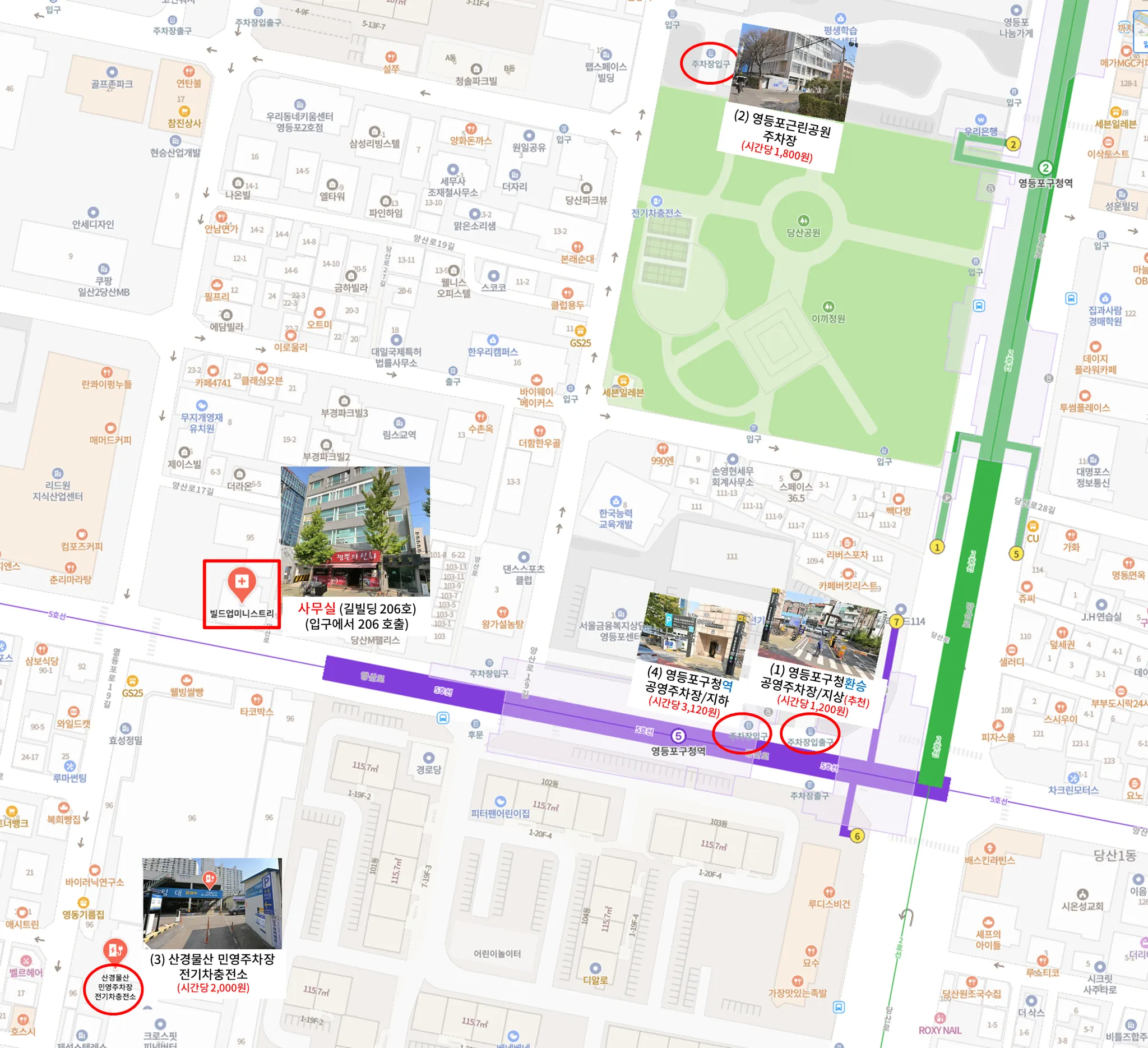 영등포구청역 2호선 1번 출구, 5호선 7번 출구 (도보4분)